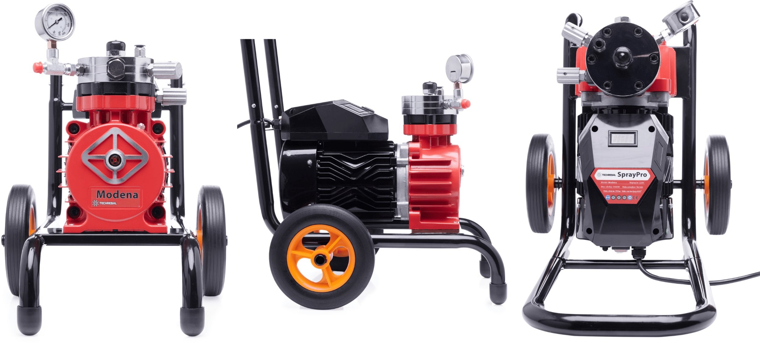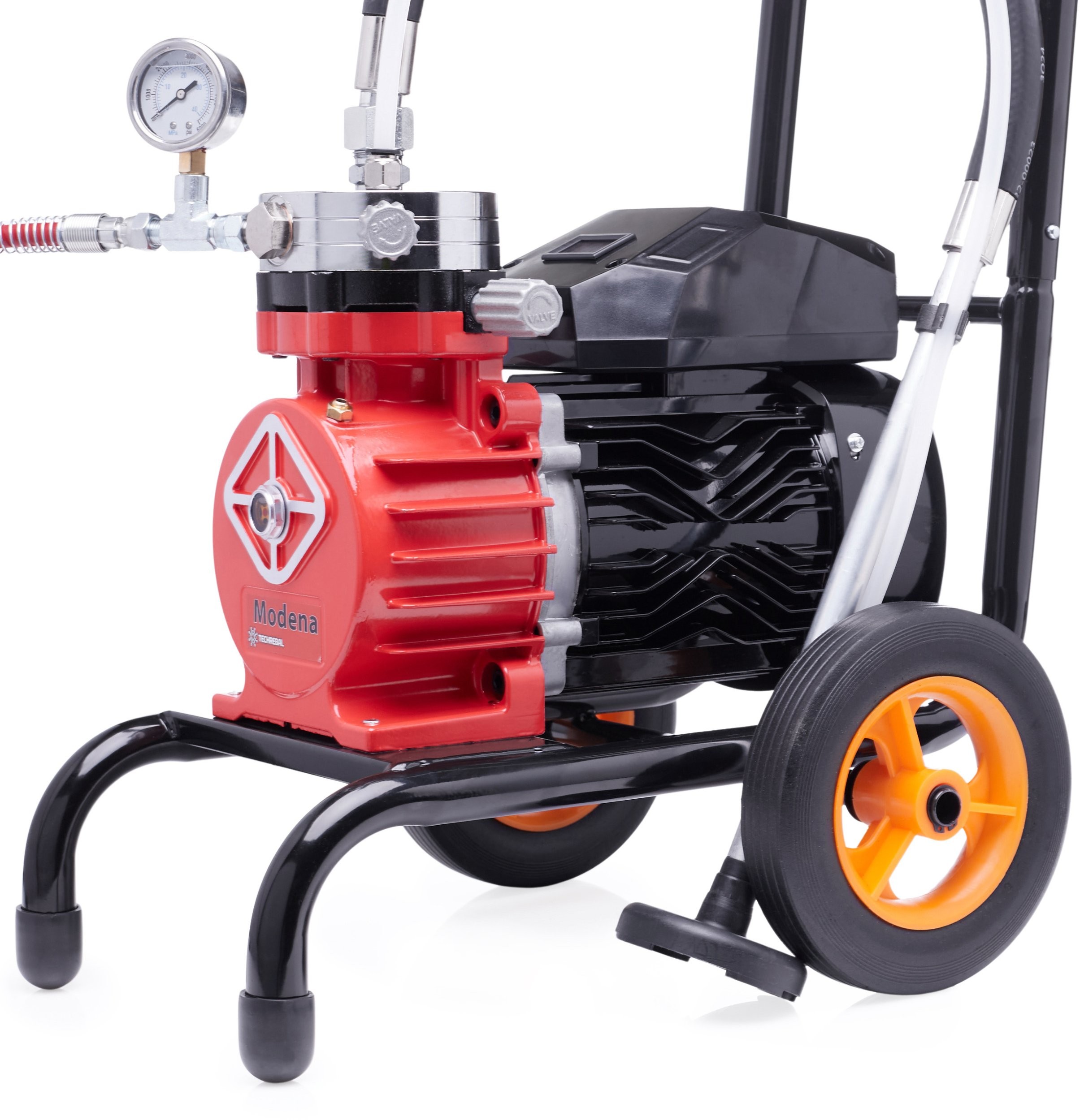 Das Farbspritzgerät Techrebal Modena zeichnet sich durch eine solide Konstruktion aus hochwertigen Materialien aus, was eine lange Lebensdauer des Geräts gewährleistet. Die Mobilität des Geräts erleichtert den Transport, was bei Arbeiten an verschiedenen Standorten von Bedeutung ist.