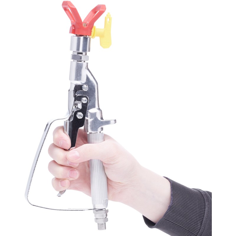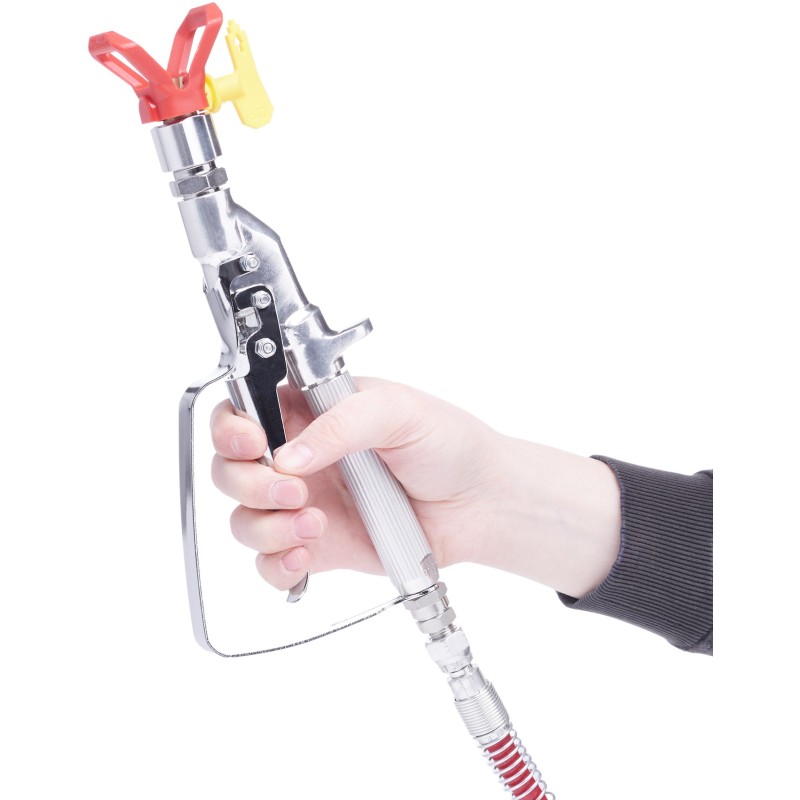Die Spritzpistole zeichnet sich durch eine leichte und ergonomische Konstruktion aus, wodurch auch langes Streichen nicht zu Ermüdungserscheinungen in den Händen führt. Sie ist die ideale Lösung für alle, die viele Stunden mit Streichen verbringen.