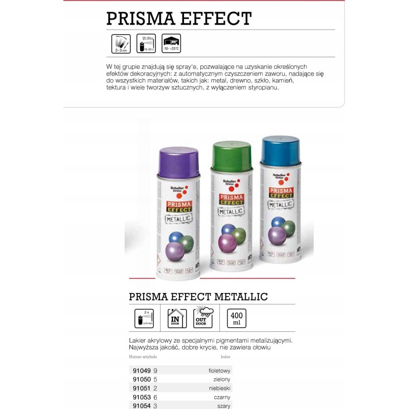 In dieser Gruppe finden sich Sprühfarben, mit denen sich verschiedene dekorative Effekte erzielen lassen: mit automatischer Ventilreinigung, geeignet für alle Materialien wie Metall, Holz, Glas, Stein, Pappe und viele Kunststoffe, ausgenommen Styropor.