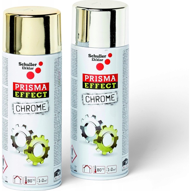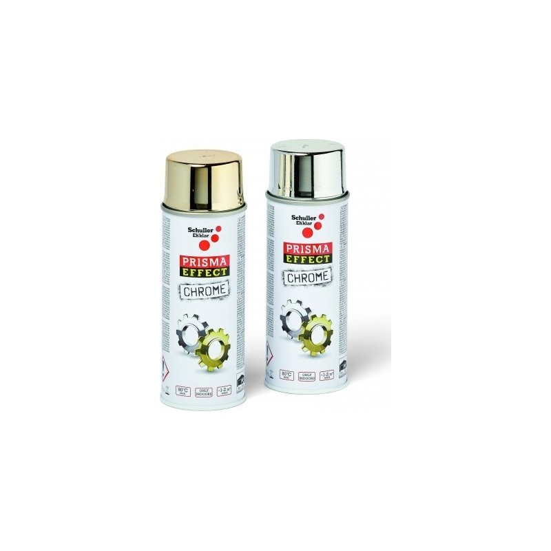 Der Sprühlack PRISMA EFFECT CHROME zeichnet sich durch einen intensiven Glanz aus. Auf glatten Oberflächen erzeugt der Lack einen Effekt von poliertem Gold oder Silber.