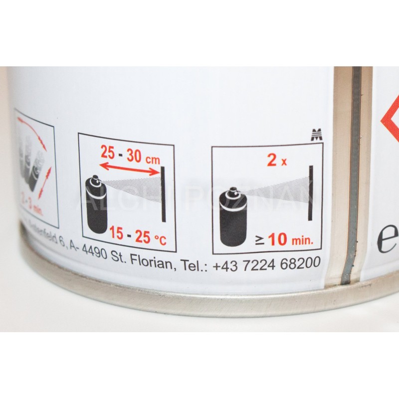 Die Oberfläche muss sauber, trocken und fettfrei sein. Vor Gebrauch ca. 2–3 Minuten schütteln. Anschließend aus einer Entfernung von ca. 25–30 cm bei einer Behältertemperatur von 15–25 °C aufsprühen. Der Lack sollte gleichmäßig aufgetragen werden, indem die Oberfläche mehrmals mit dünnen Schichten besprüht wird. Das Spray ist für den Innenbereich bestimmt. Es ist nicht witterungsbeständig und lässt sich nicht leicht abwaschen.