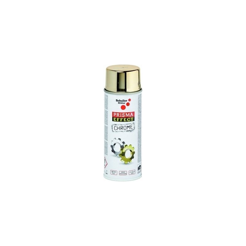 Die Packung enthält 400 ml PRISMA EFFECT CHROME Sprühlack in Gold/Silber.