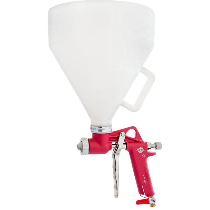 Die Putzpistole 45260 erleichtert und beschleunigt die Arbeit beim Auftragen von Dekorputz erheblich. Die durch das Spritzverfahren erzeugten strukturierten Oberflächen sind gleichmäßiger und reproduzierbarer, wodurch das Endergebnis optisch deutlich besser aussieht. Im Vergleich zur klassischen Methode des Strukturauftrags wird bis zu 40 % weniger Putz verbraucht. Der halboffene 5-Liter-Behälter ermöglicht ein einfaches und schnelles Nachfüllen des Materials. Die im Set enthaltenen 3 Düsen mit einem Durchmesser von 4, 6 und 8 mm ermöglichen das Auftragen von Strukturen mit unterschiedlicher Körnung, von feinen bis zu grobkörnigen Beschichtungen. Der Gummiverbinder zwischen Pistole und Behälter ermöglicht das Erreichen schwer zugänglicher Stellen, Ecken und Vertiefungen. Die Pistole ist mit einem Kugelventil zum Absperren der Luft ausgestattet, das ein Austrocknen des Putzes während einer kurzen Sprühpause verhindert. Die Pistole und die Düsen lassen sich sehr einfach mit Wasser reinigen, was eine wiederholte Verwendung derselben Düse ermöglicht. Mit dem Einstellknopf lässt sich die Pistole an verschiedene Putzmassen anpassen.