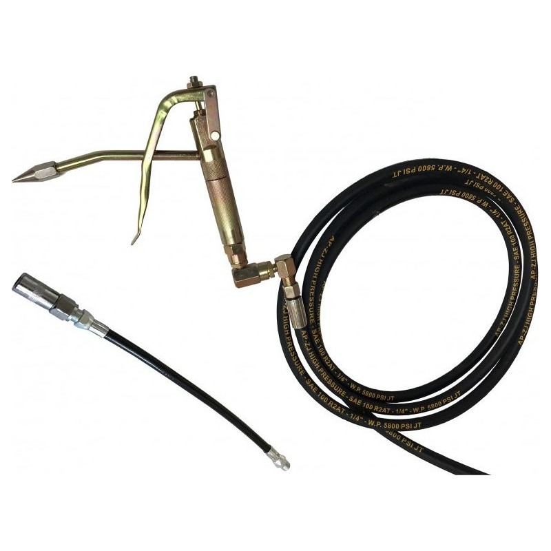 Schmierpistole für professionelle Kfz-Werkstätten und Autowerkstätten. Pulverbeschichtetes Gehäuse, auf Hochglanz poliert. Ausgestattet mit einer Druckluftpumpe, dank der sie direkt an einen Kompressor angeschlossen werden kann. Der 4 m lange Schlauch garantiert komfortables Arbeiten und Bewegungsfreiheit für den Bediener der Schmierpistole. Im Lieferumfang enthalten sind ein Satz Dichtungen, Unterlegscheiben, Federn, eine Pistole sowie zwei Aufsätze. Die Rollen sorgen für Mobilität und einfachen Transport. Dank des drehbaren Kopfes in der Pistole verwickelt sich der an die Schmierpistole angeschlossene Schlauch nicht, was den Arbeitskomfort erheblich verbessert. Der U-förmige Griff erleichtert den Transport.