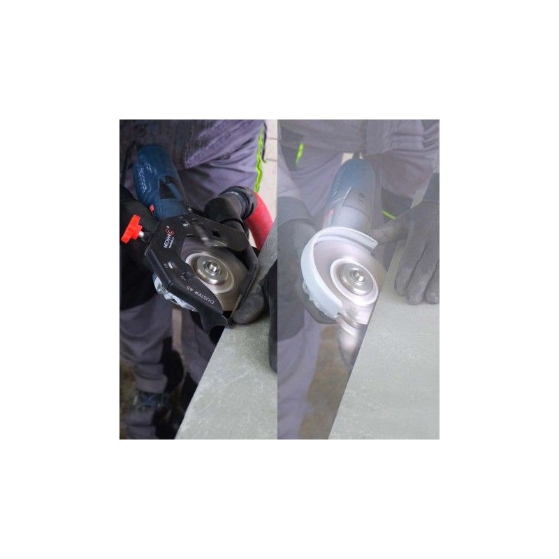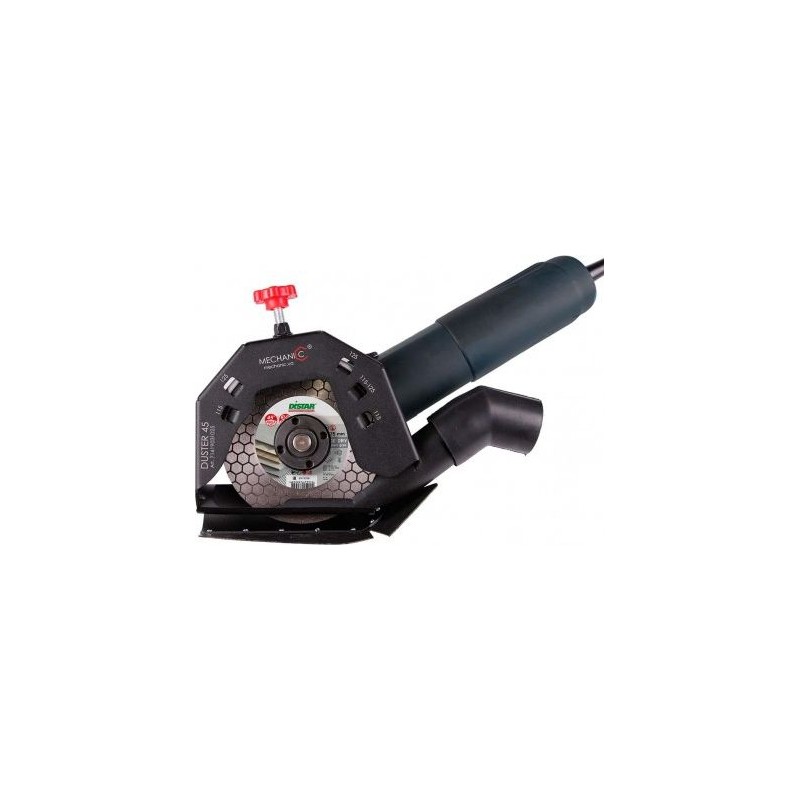 Der universelle Adapter MECHANIC DUSTER für das Gehrungsschneiden ist ein Werkzeug, das ein effektives Schneiden mit den meisten Winkelschleifern ermöglicht, die mit Diamantscheiben mit einem Durchmesser von 115 bis 125 mm arbeiten. Dieser Adapter verfügt über eine leichte und kompakte Bauweise, was den Arbeitskomfort verbessert und eine effektive Absaugung des beim Schneiden entstehenden Staubs ermöglicht.