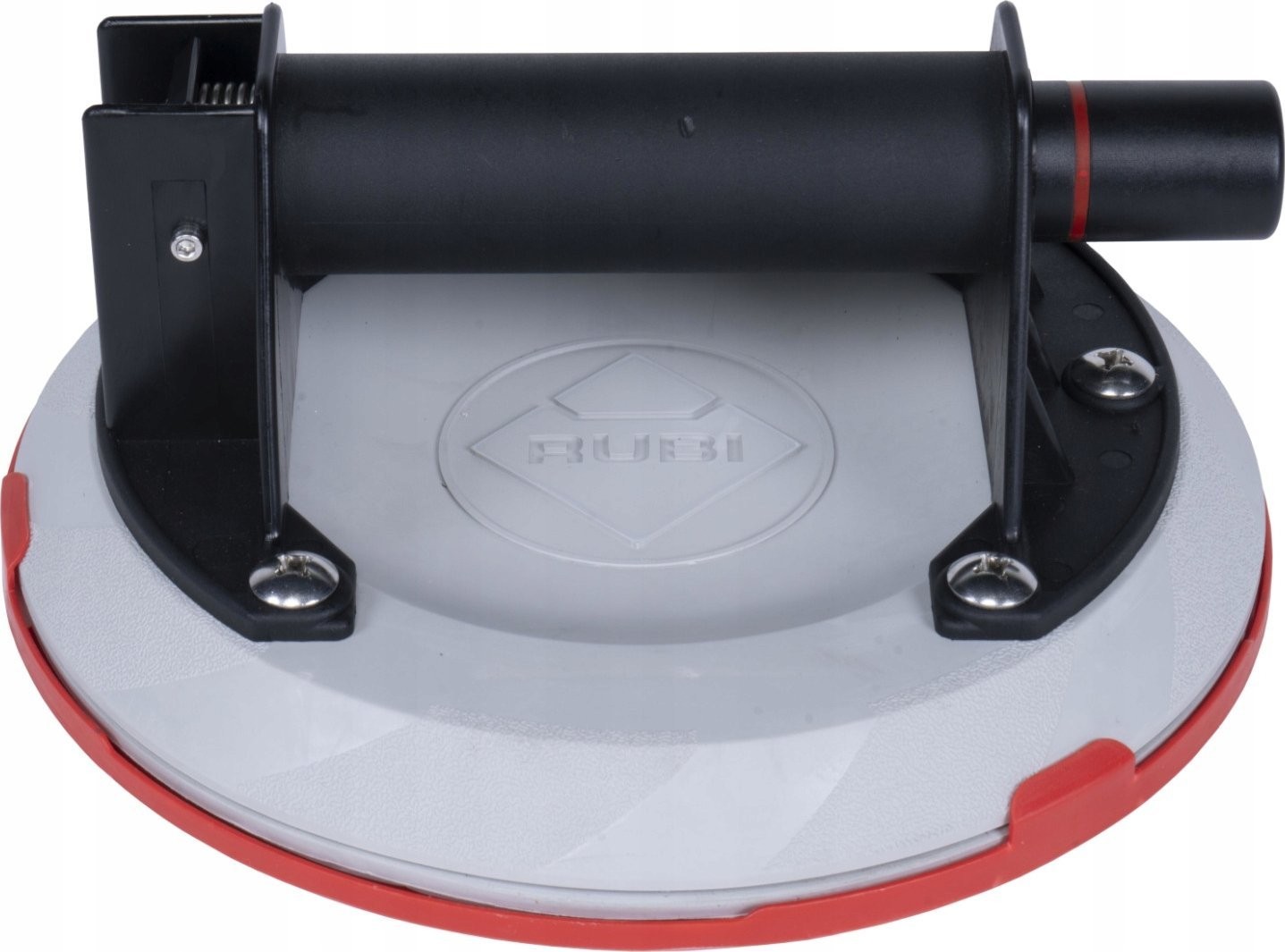 - Ein einzelner RUBI-Saugnapf verfügt über einen robusten Körper aus technischem Polymer und einen ergonomischen Griff, der eine bequeme Handhabung großer Fliesen gewährleistet.