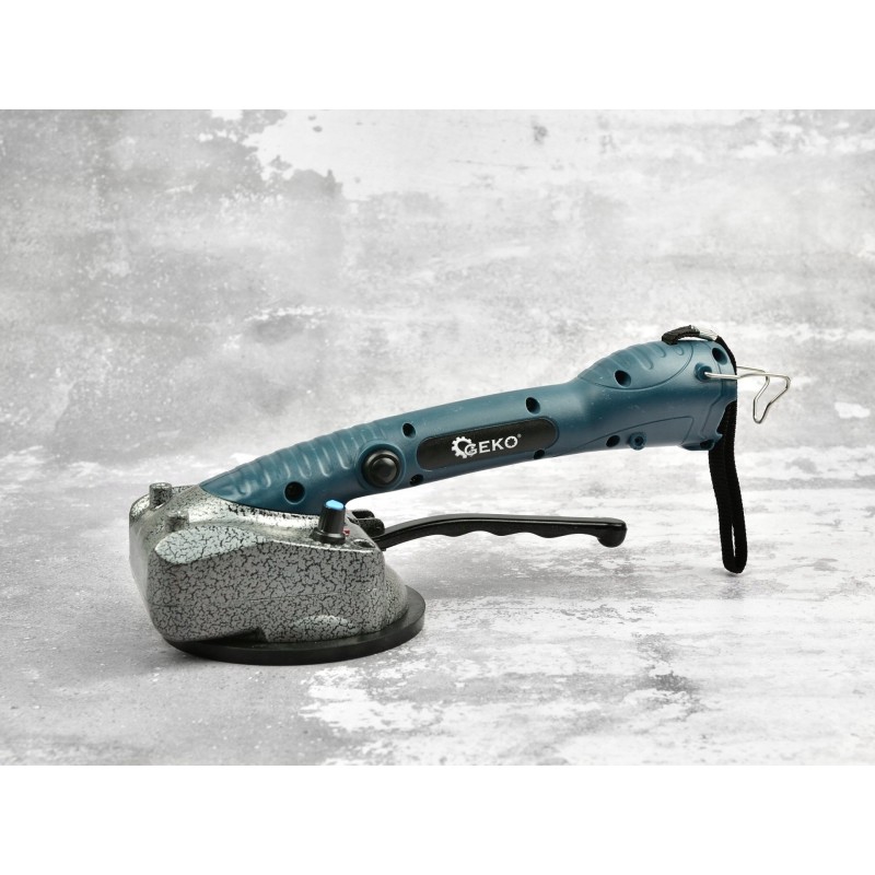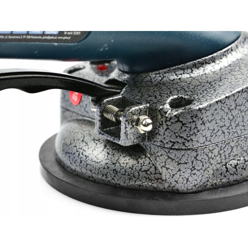 Das Elektrowerkzeug zeichnet sich durch eine robuste Konstruktion aus, die Sicherheit und Langlebigkeit während des Betriebs gewährleistet. Die Verriegelung des Saugnapfhebels erhöht zusätzlich den Bedienkomfort und verhindert ein versehentliches Lösen des Werkzeugs während der Arbeit.