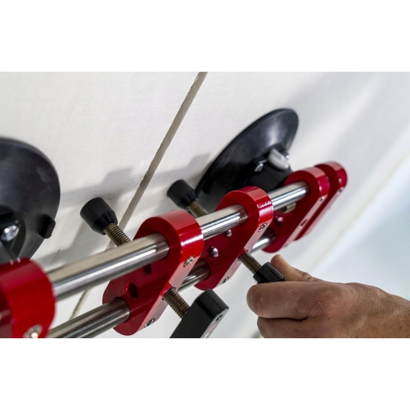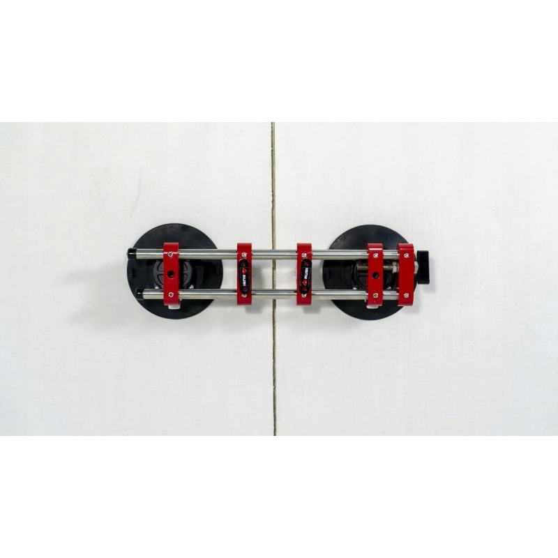 Das Werkzeug TILE GAP CLOSER von RUBI erleichtert diesen Vorgang. Es verfügt über zwei Vakuumsauger mit einem Durchmesser von 150 mm, die auf jeder Art von Oberfläche haften: glatten, rauen und strukturierten.