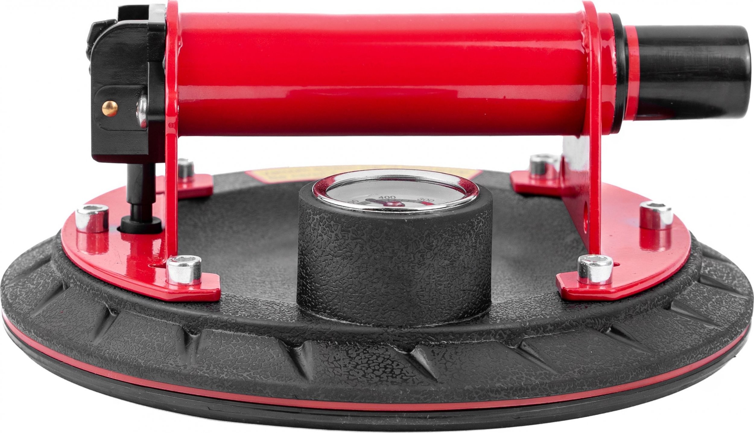 2. Unterdruck erzeugen: Durch die Pumpe entsteht ein starker Unterdruck, wodurch der Halter am Material haftet.