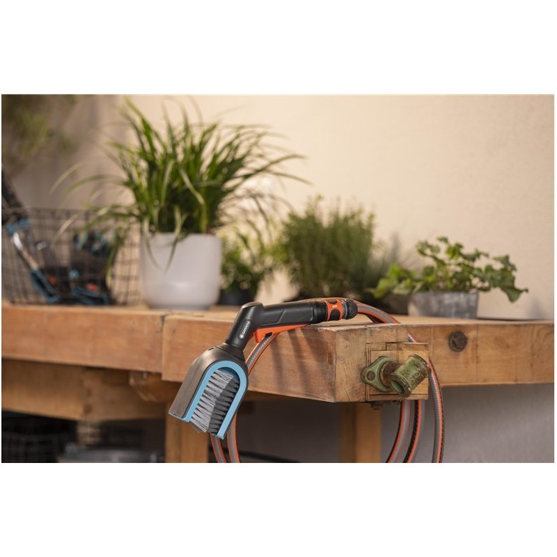Zur Bürste passen ausschließlich Gardena Cleansystem-Stiele. Sie lässt sich mit dem OGS-Schnellanschluss direkt an den Schlauch anschließen.