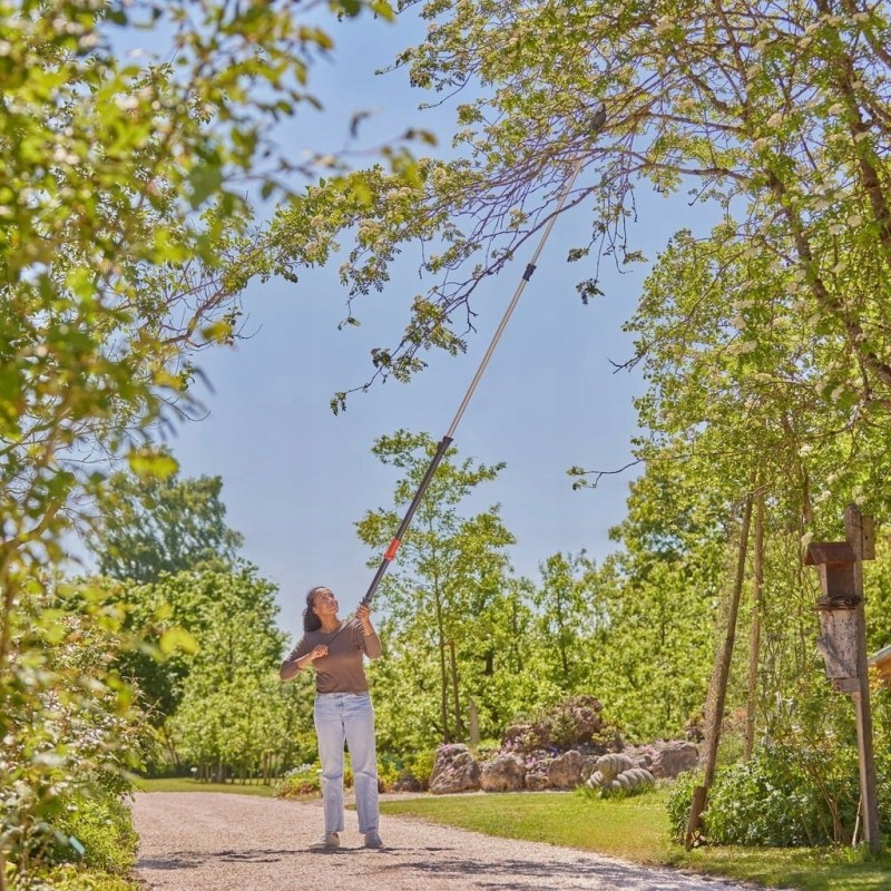 Die Gartenschere Gardena StarCut Pro L zeichnet sich durch eine einfache Längenverstellung aus, wodurch sie an die unterschiedlichen Bedürfnisse des Benutzers angepasst werden kann. Dadurch ist das Werkzeug äußerst vielseitig und bewährt sich in vielen Situationen, da es bequemes Schneiden in verschiedenen Höhen und unter verschiedenen Winkeln ermöglicht.
