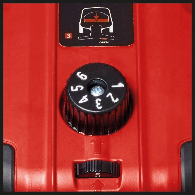 Mit dem integrierten Drehknopf lässt sich die Ausbringmenge in 6 Stufen einstellen, die Streugeschwindigkeit kann ebenfalls in 6 Stufen über den Geschwindigkeitsregler gesteuert werden.