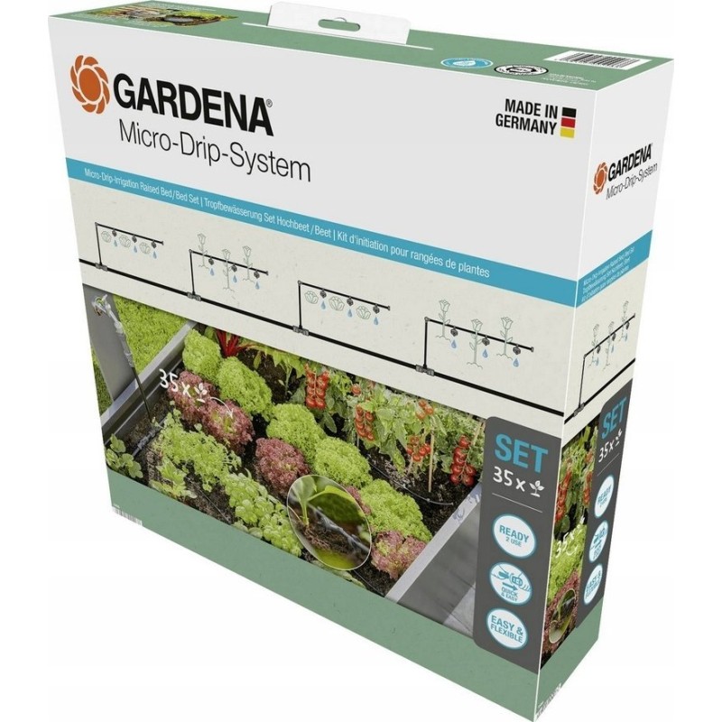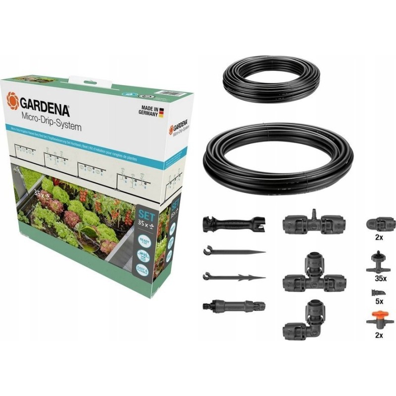 Gardena GARDENA Micro-Drip System Tropfbewässerungsset für Hochbeete/Beete, 35 Pflanzen, Tropfer (Schwarz/Grau, Modell 2023)