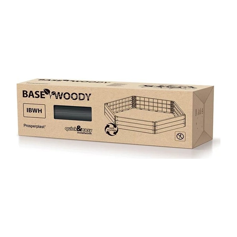 Das Gartenbeet Base Woody IBWH mit den Maßen 1480 x 1290 x 250 mm in eleganter anthrazitfarbener Ausführung ist sowohl ein stilvolles als auch praktisches Accessoire für jeden Garten. Sie besteht aus hochwertigem Kunststoff, ist leicht und gleichzeitig äußerst langlebig, was sie zum idealen Ort für den Anbau von Blumen, Gemüse und Kräutern macht.