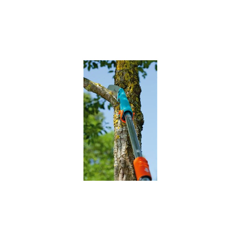 - Zum Entfernen von hoch gelegenen Ästen kann ein Teleskopstiel verwendet werden, der die Reichweite auf 5 m erhöht.