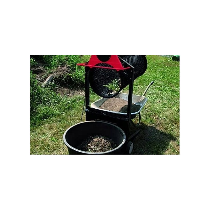 - Der rotierende Zylinder sorgt dafür, dass die gesiebte Erde auf der rechten Seite des Geräts und unerwünschte Steine auf der Rückseite des Geräts herausfallen