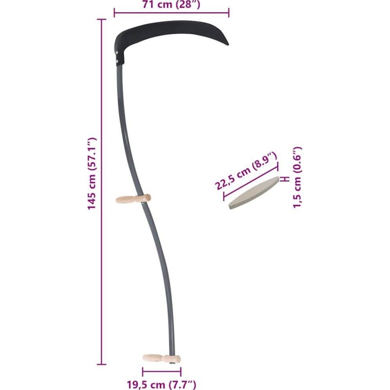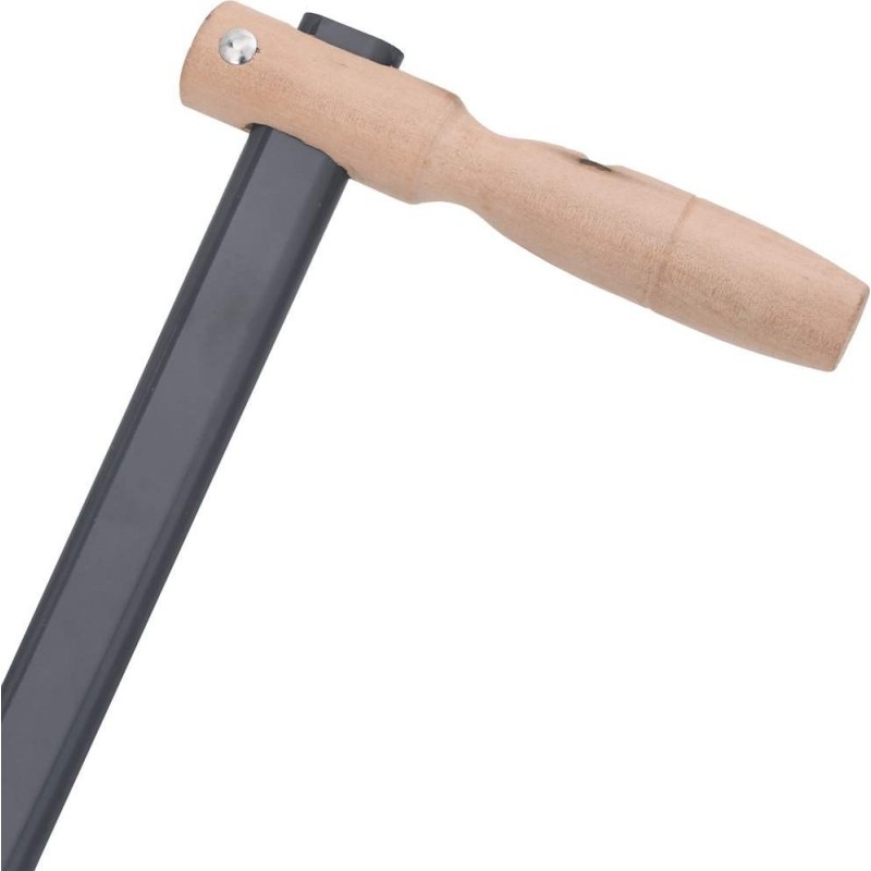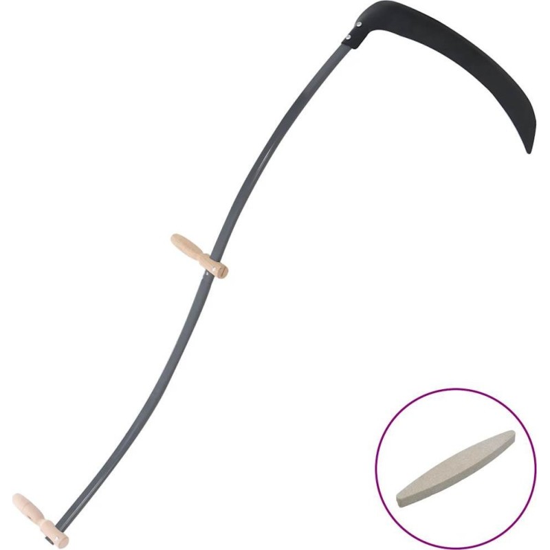 EigenschaftenDer Griff ist mit zwei kurzen Holzgriffen ausgestattet, die im rechten Winkel angeordnet sind, was einen bequemen Halt für Benutzer unterschiedlicher Körpergröße gewährleistet. Im Lieferumfang ist ein Schleifstein enthalten, mit dem sich die Schärfe der Klinge leicht aufrechterhalten lässt, was für einen glatten und mühelosen Schnitt sorgt.