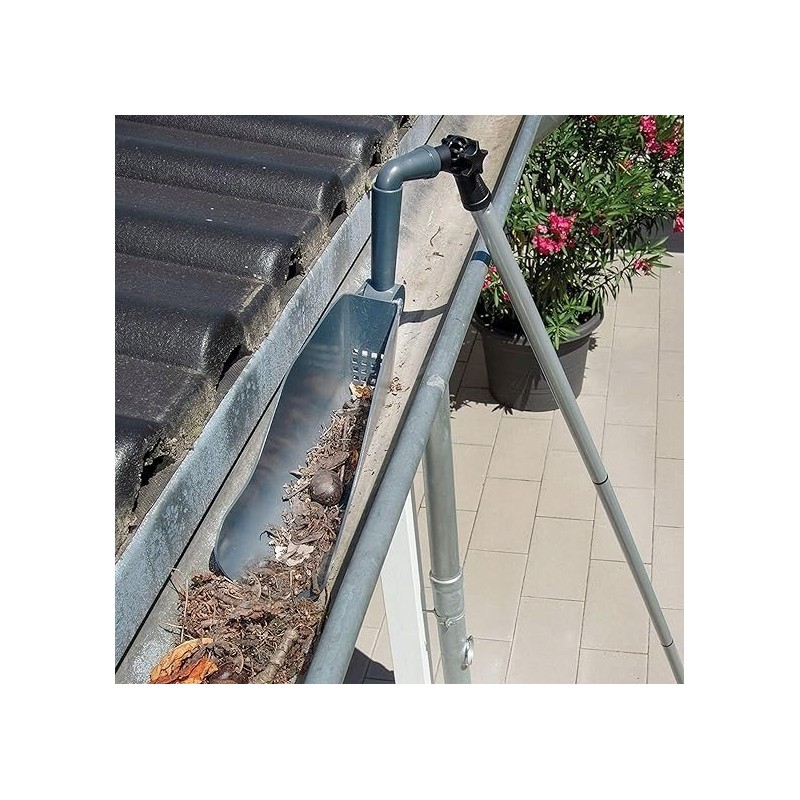 - Bequeme Reinigung: Laub und Schmutz lassen sich schnell und einfach aus der Dachrinne entfernen. Die Schaufel verfügt über eine optimierte, halbrunde Form sowie Abflussöffnungen