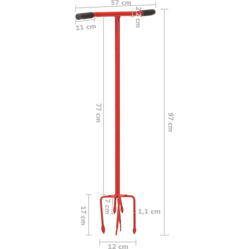 vidaXL Hand-Gartenlockerer, rot, aus Stahl