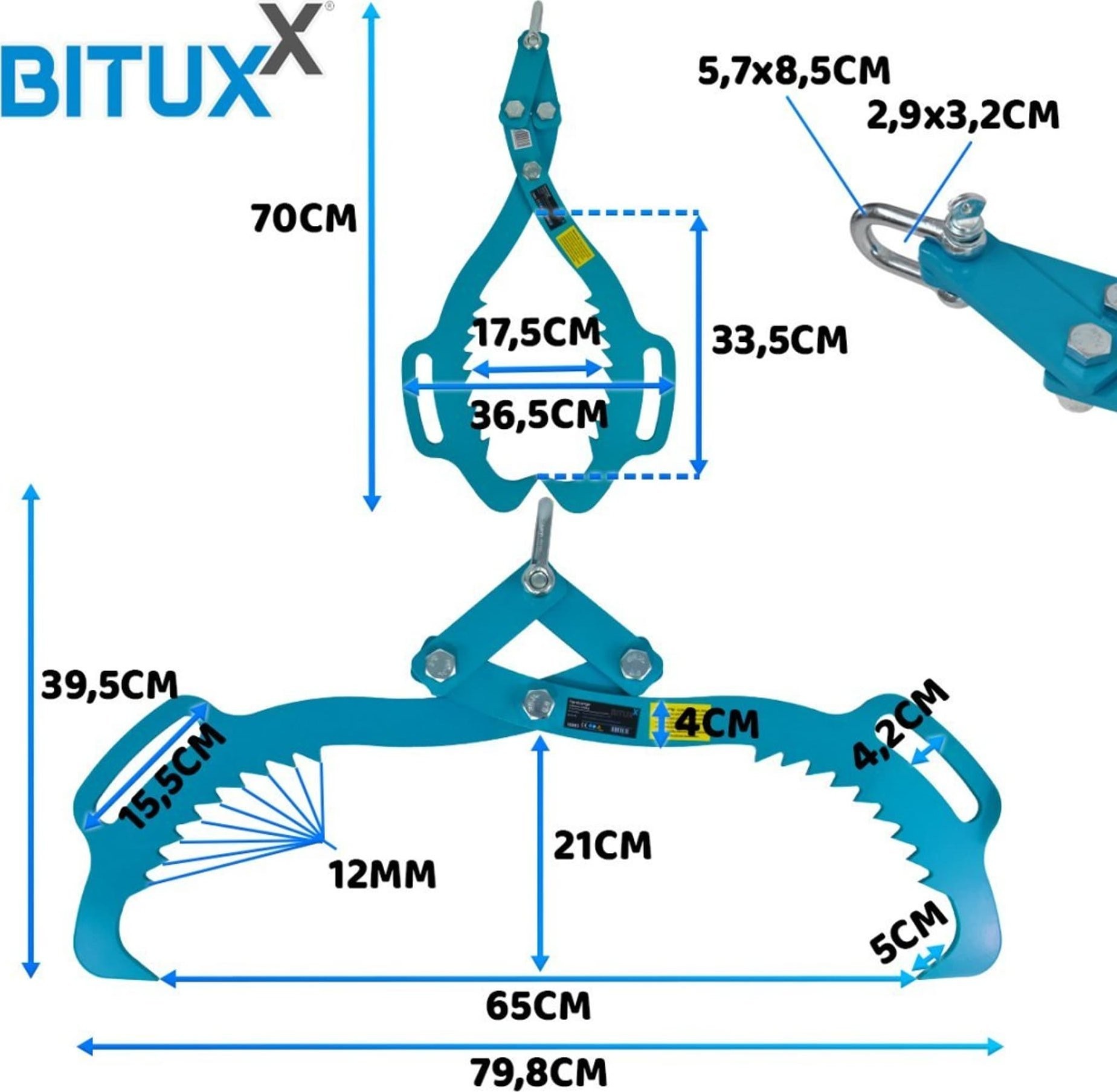 Bituxx Holzgreifer 520 mm, 500 kg, selbstspannende Holzgreifer von Bituxx