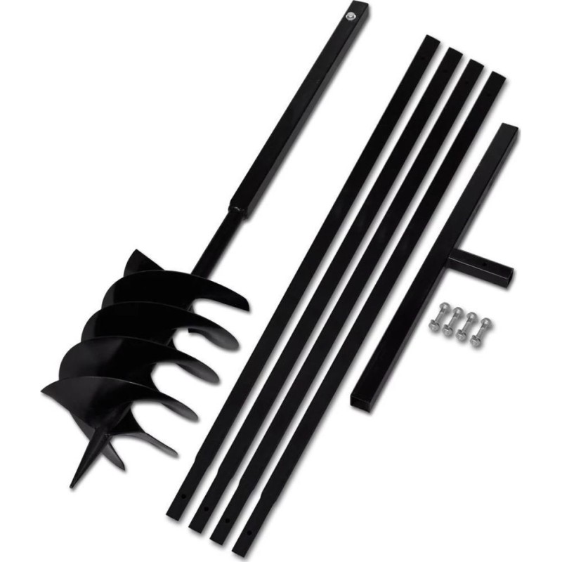 - Im Lieferumfang enthalten sind ein Erdbohrer, ein Griff, 4 Verlängerungsrohre und Schrauben.
