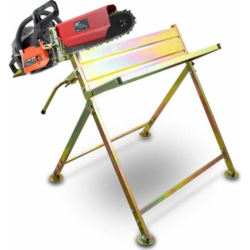 Gewicht: 11 kg Maximale Belastung: 120 kg Maximaler Stammdurchmesser: 25 cm Schutzlänge des Sägeblatts: Kettenschutz mit Befestigungsvorrichtung ca. 45 cm Abmessungen der zusammengeklappten Säge: ca. 81 x 20 x 100 cm (L / B / H) Abmessungen des Sägeschutzes: ca. 81 x 72 x 90 cm (L/B/H) Material: verchromter verzinkter Stahl