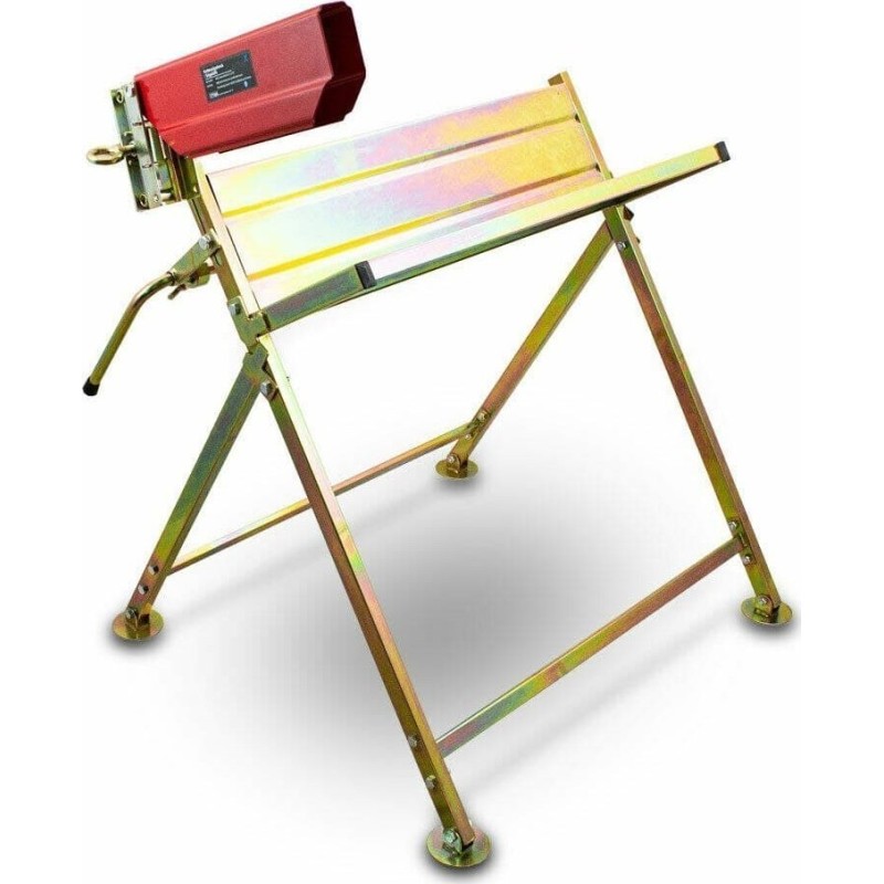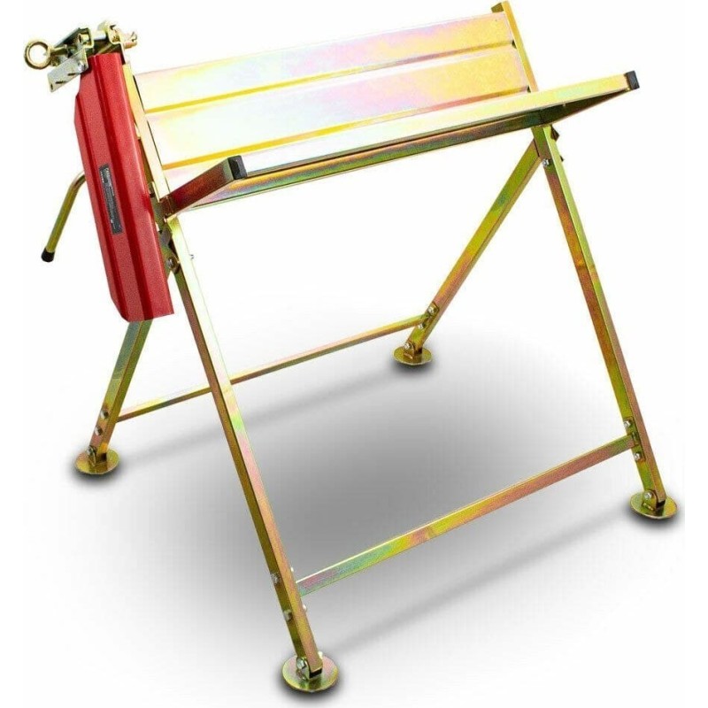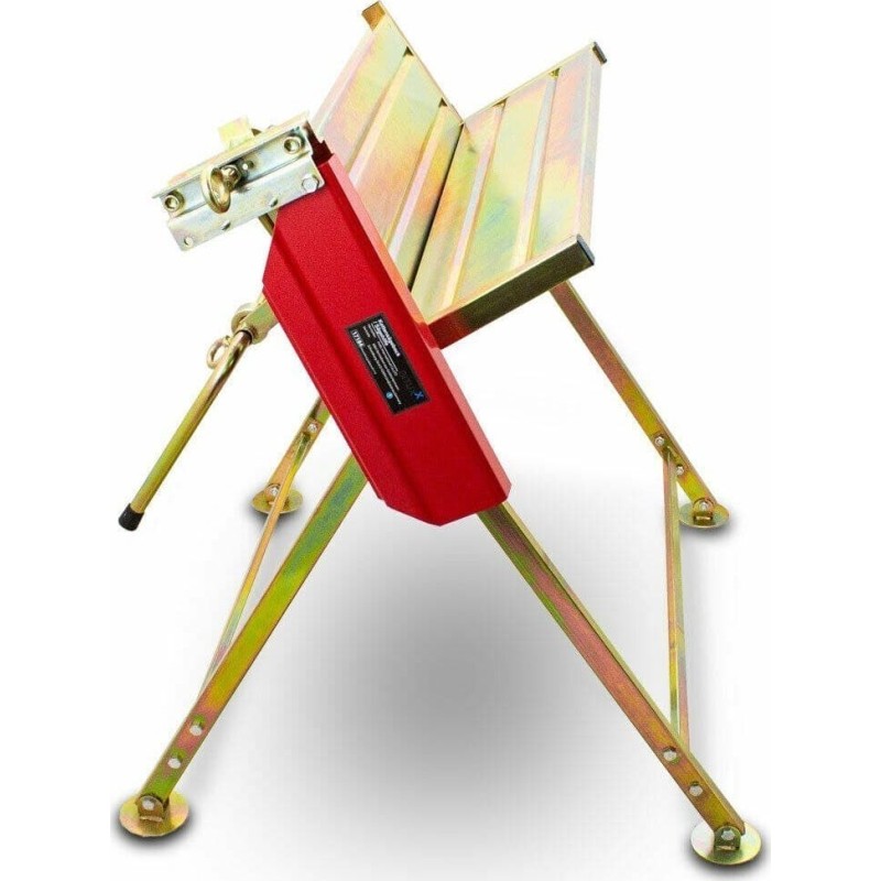 Der Holzschnittständer verfügt über eine stabile Konstruktion, die einer Belastung von bis zu 120 kg standhält. Er ist aus verzinktem Stahl gefertigt, wodurch er langlebig und widerstandsfähig gegen mechanische Beschädigungen und Witterungseinflüsse ist. Mit diesem Produkt kannst du einen Baumstamm bequem in Stücke zerteilen. Der Ständer ist mit einem Anschlag ausgestattet, der das Schneiden gleichmäßiger Holzstücke ermöglicht. Nach getaner Arbeit lässt sich der Tisch zusammenklappen und senkrecht lagern, wodurch er wenig Platz beansprucht.