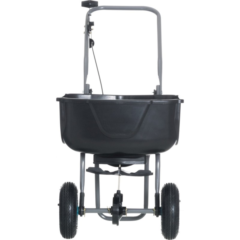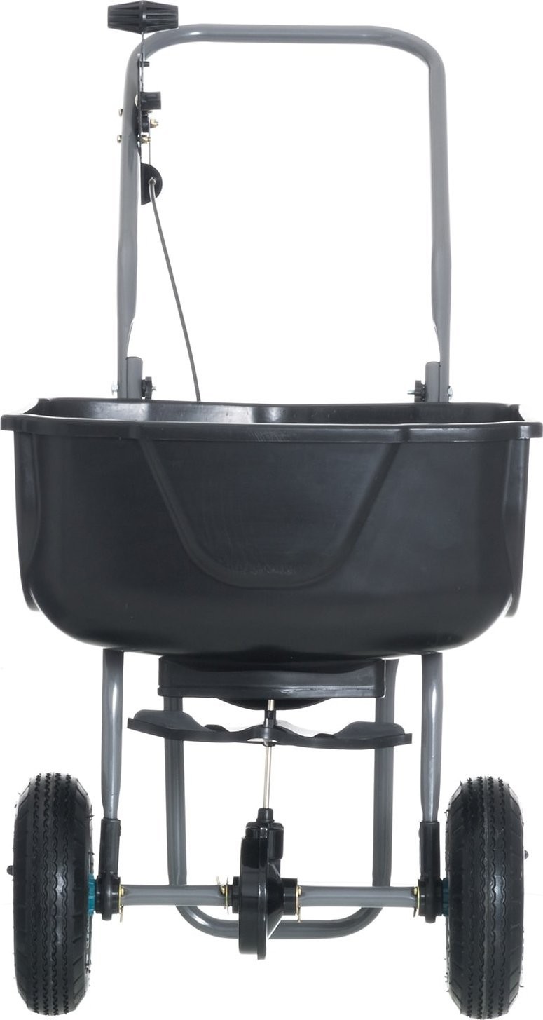 ProduktmerkmaleDer Streuer verfügt über Luftreifen mit einem Durchmesser von 8 Zoll sowie einen Steuerschalter mit mehreren Streueinstellungen.
