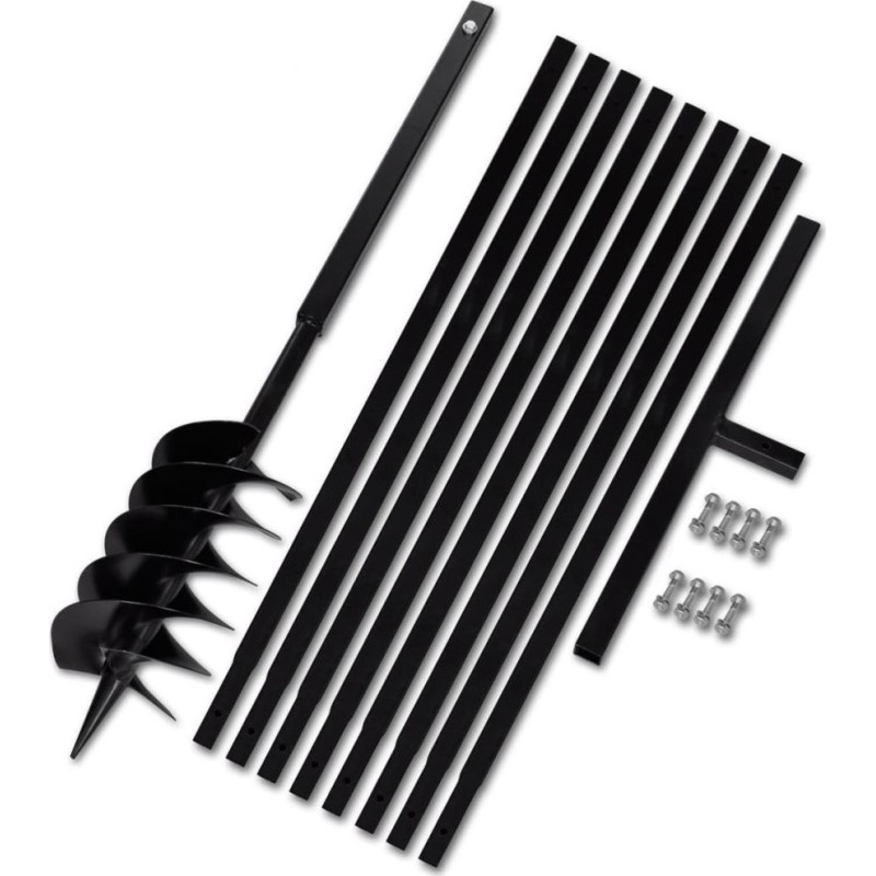 - Im Lieferumfang enthalten sind ein Erdbohrer, ein Griff, 8 Verlängerungsrohre und Schrauben.