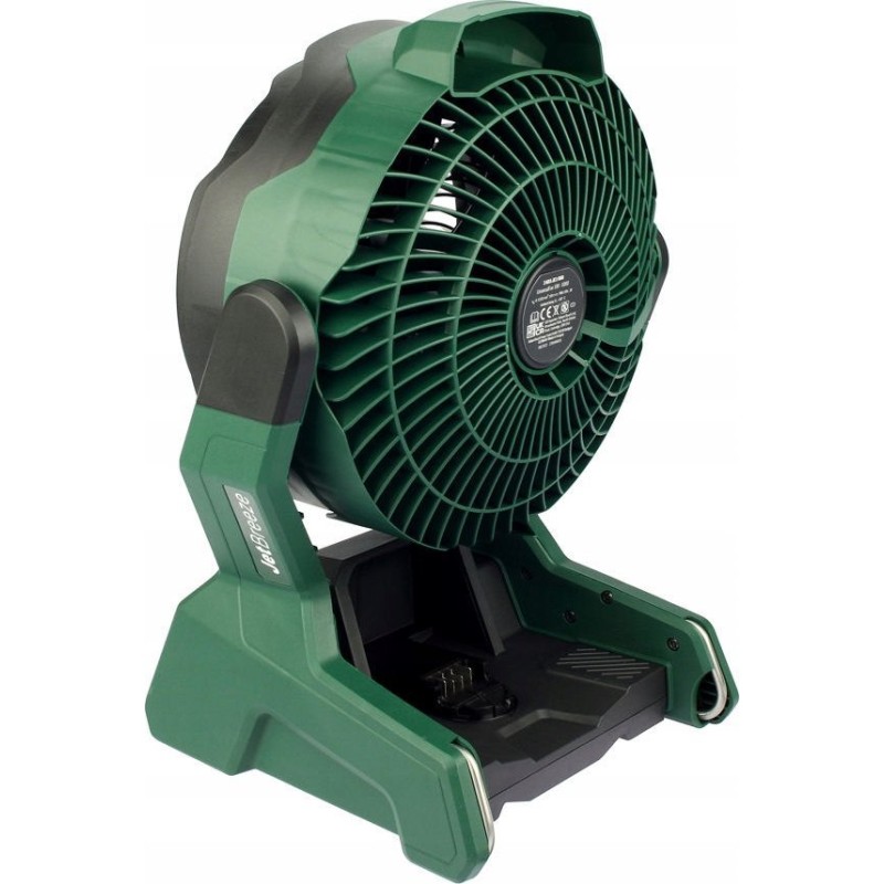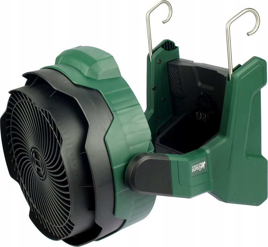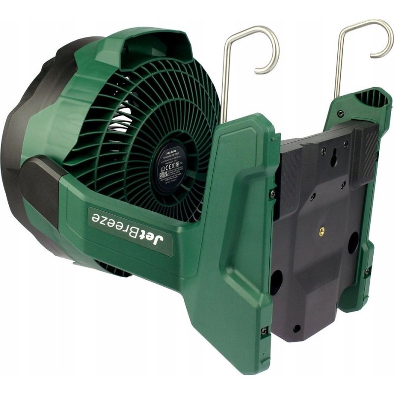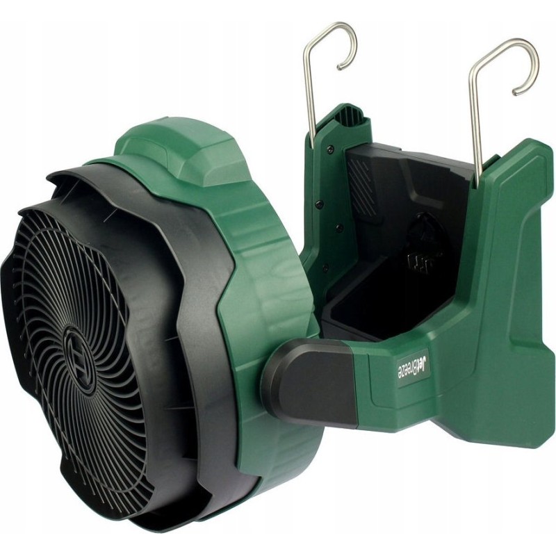 Er verfügt über eine stufenlose Drehzahlregelung, sodass Sie den Luftstrom an Ihre Bedürfnisse anpassen können. Der Neigungswinkel des Ventilators lässt sich im Bereich von 30° nach vorne und 180° nach hinten verstellen. Der Ventilator verfügt außerdem über Haken und Ösen, mit denen er an einer Leiter, einem Stativ oder einer Konstruktion aufgehängt werden kann.
