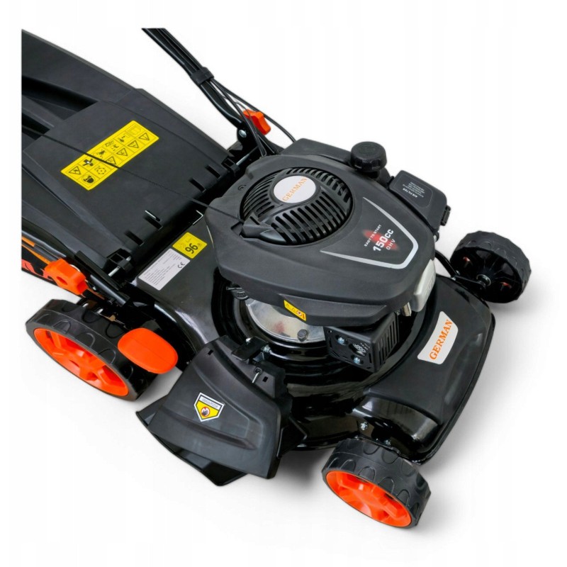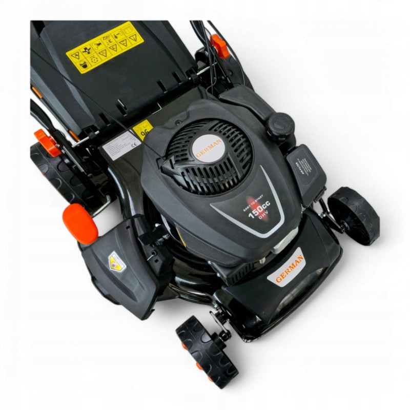 Der 7-PS-GERMAN-OHV-Motor garantiert nicht nur hohe Leistung, sondern auch Zuverlässigkeit im Betrieb. Dank eines Hubraums von 150 cm³ bewältigt der Rasenmäher selbst die schwierigsten Rasenbedingungen, was ihn zur perfekten Wahl für jeden Gärtner macht.
