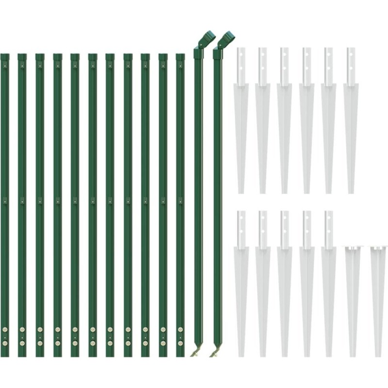 - Abmessungen des geraden Pfostens (ohne Anker): 32 mm x 1,21 m (Durchmesser x Höhe)