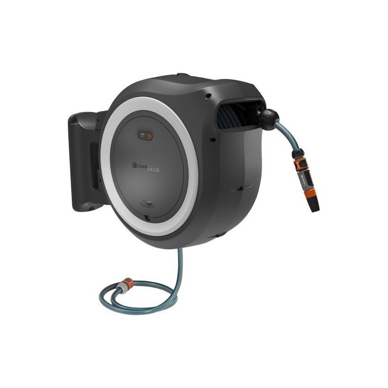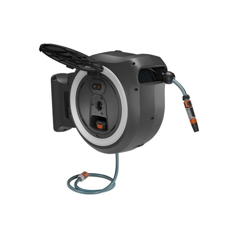 Gardena GARDENA Akku-Wandschlauchbox PowerRoll XL 18 V P4A, 35 Meter, Schlauchaufroller (grau/weiß, Li-Ionen-Akku 2,5 Ah, POWE