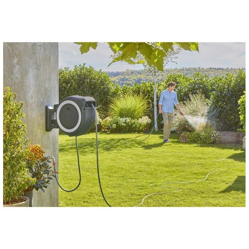 - Die integrierte Schlauchführung sorgt für ein gleichmäßiges Aufwickeln ohne Verwicklungen oder Knicke