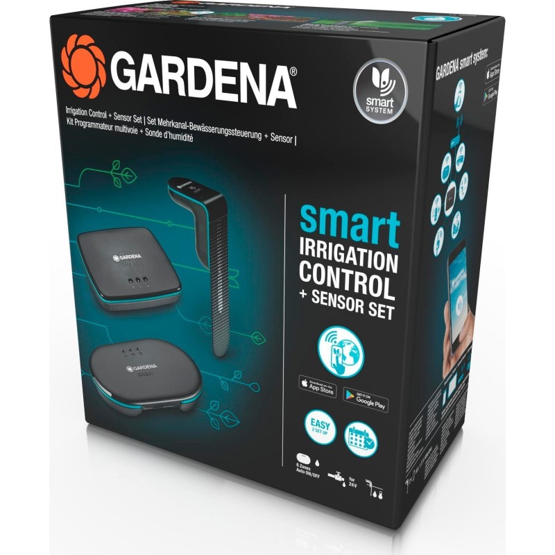 Intelligenter Bewässerungscontroller – das Set von GARDENA ermöglicht die Steuerung eines Bewässerungssystems mit bis zu sechs 24-V-Ventilen, wodurch Sie die Bewässerung für sechs verschiedene Gartenbereiche vollständig individuell anpassen können. Es enthält einen intelligenten Bewässerungscontroller sowie ein Smart Gateway. Der Bewässerungscontroller ist mit den meisten auf dem Markt erhältlichen 24-V-Bewässerungsventilen kompatibel. Nach dem Anschluss wird das Bewässerungssystem im Garten nicht mehr auf herkömmliche Weise gesteuert, sondern über die GARDENA smart App (verfügbar für iOS und Android). Die App ermöglicht die Einrichtung von bis zu sechs verschiedenen Bewässerungszonen mit unterschiedlichen Bewässerungsplänen. Der intelligente Bewässerungsregler lässt sich perfekt mit anderen Komponenten des GARDENA Bewässerungssystems kombinieren, wie zum Beispiel dem Sprinklersystem oder dem Micro-Drip-System. Er ist zudem spritzwassergeschützt und kann daher bedenkenlos im Außenbereich installiert werden. In Verbindung mit dem mitgelieferten intelligenten Sensor, der die Bodenfeuchtigkeit direkt an den Pflanzenwurzeln misst, sorgt er für eine optimale, bedarfsgerechte Bewässerung. Die gemessenen Werte wie Bodenfeuchtigkeit und Bodentemperatur werden über das Internet direkt an die GARDENA smart App auf Ihrem Smartphone oder Tablet übertragen, und zwar über ein Gateway. Jetzt können Sie die Bewässerung Ihres Gartens jederzeit und von überall aus überwachen, starten und anpassen. Dank der leistungsstarken Fernverbindung sorgt sie für eine sichere und stabile Verbindung über große Entfernungen. Das Smart-Gateway lässt sich einfach über WLAN oder ein LAN-Kabel mit Ihrem Internet-Router verbinden. Nützliche Assistenten in der GARDENA smart App erleichtern die Installation und Konfiguration.