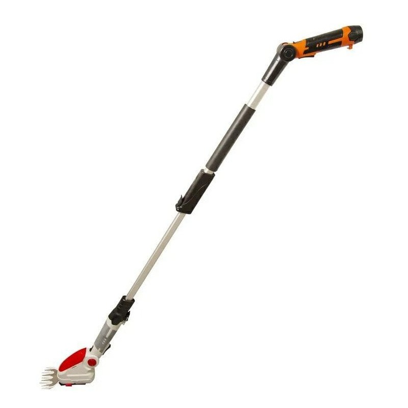 Die Schere wird mit Akku, Ladegerät und Ausleger mit Laufrolle