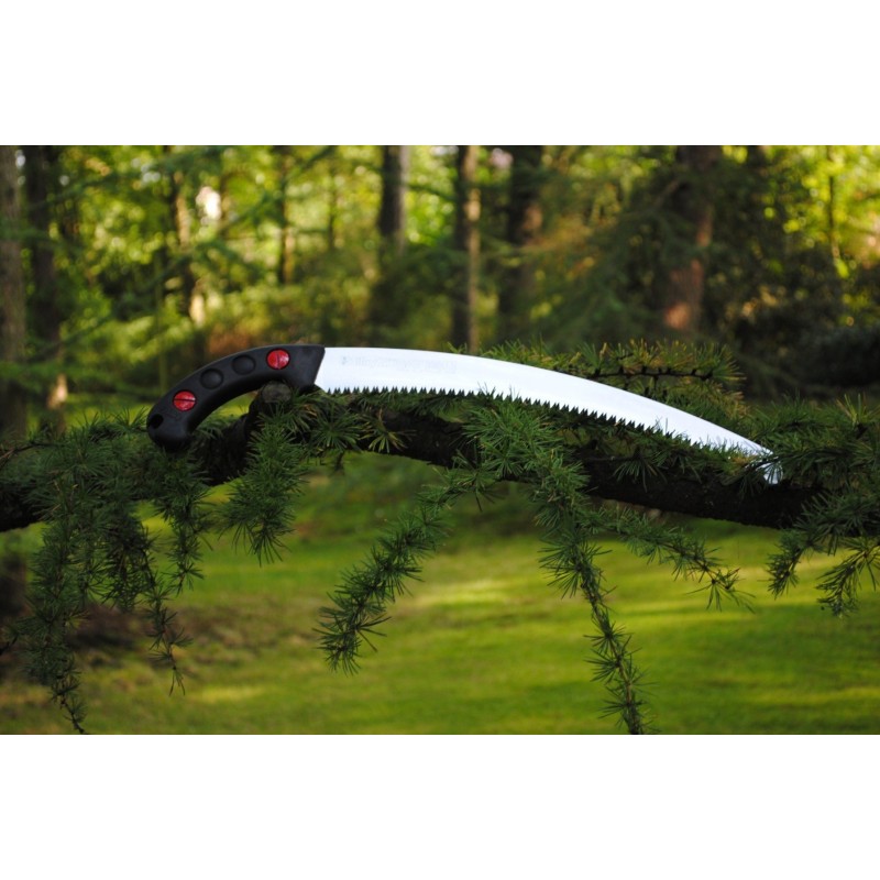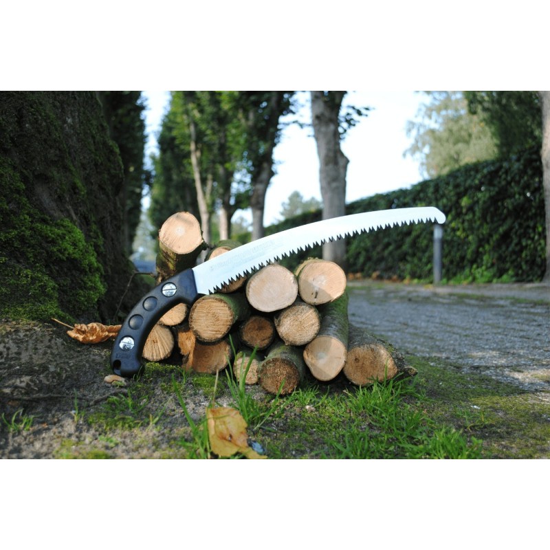Die Zübat-Baumsäge ist ein unverzichtbares Werkzeug, da sie für glatte Schnitte am Baum sorgt. Wie bekannt ist, wachsen solche Schnitte leicht zu und ermöglichen eine schnelle Heilung des Baumes. Zudem verfügt die Säge über eine gebogene Klinge, die sich sowohl in engen als auch in weitläufigen Bereichen, in Bodennähe sowie in der Höhe bewährt. Die gebogene Klinge sorgt zudem für eine bequeme Haltung von Hand, Handgelenk und Arm, unabhängig davon, ob die Schnitte unterhalb der Knie (niedrig) oder oberhalb der Schultern (hoch) ausgeführt werden.