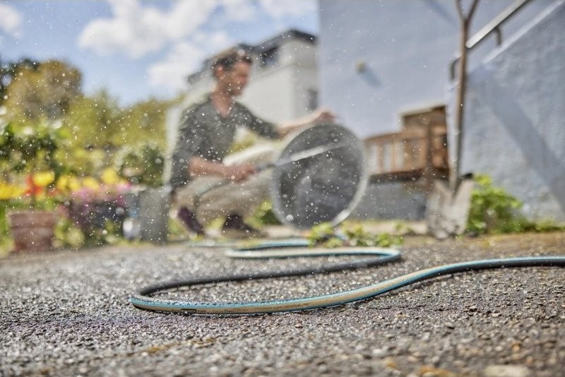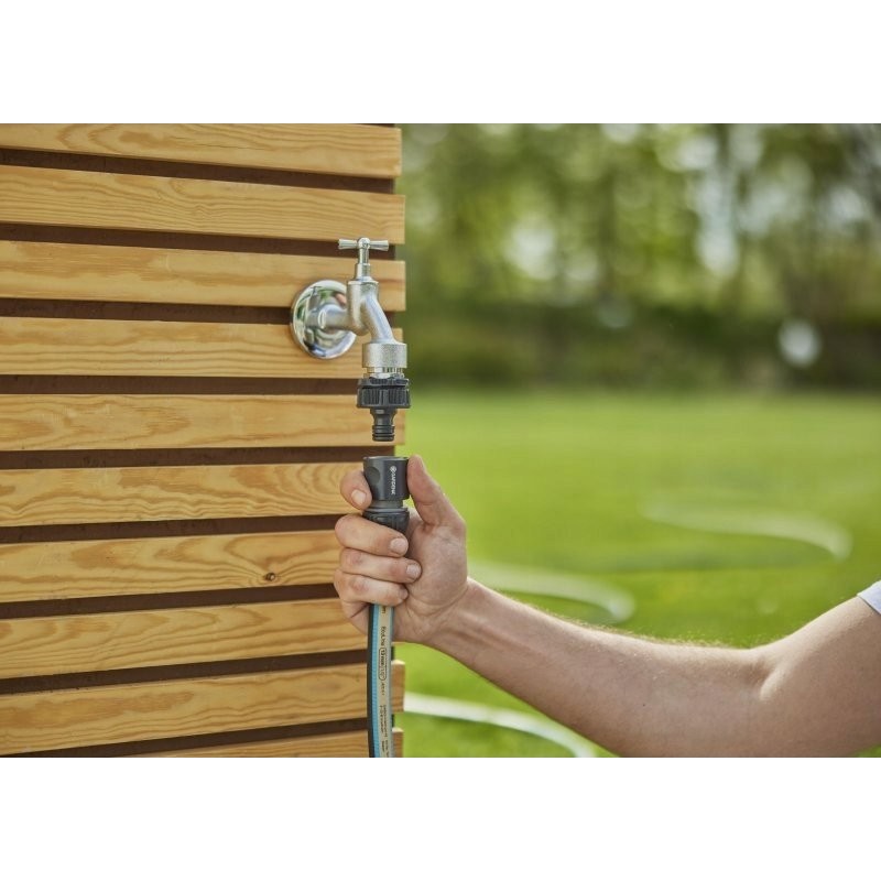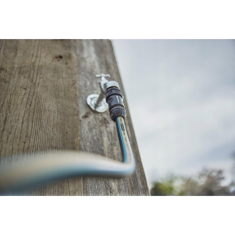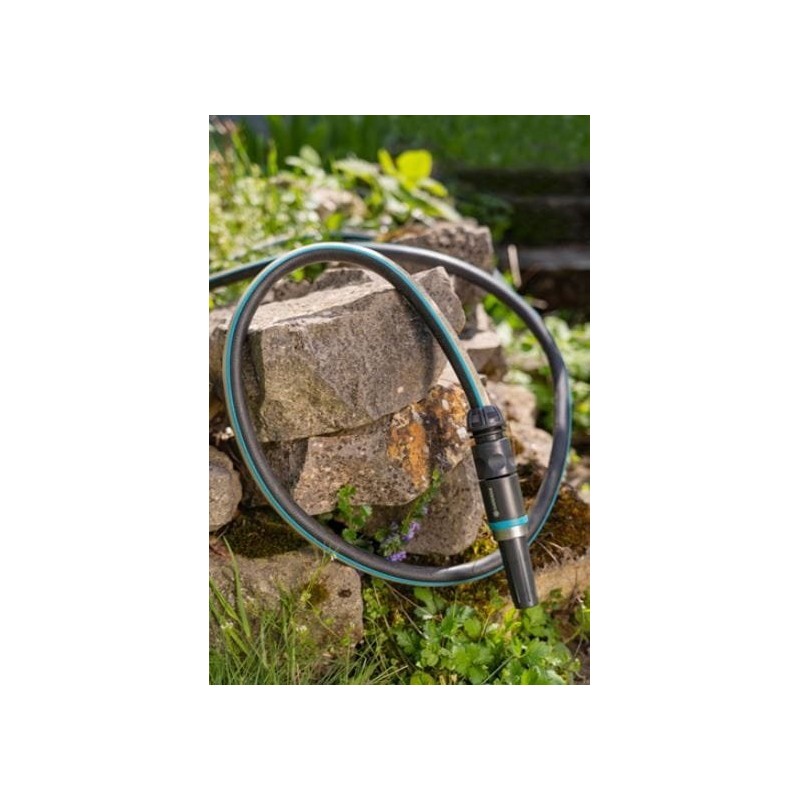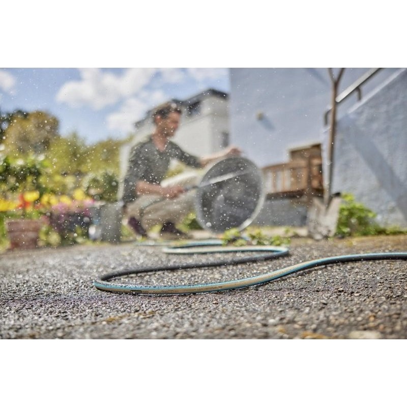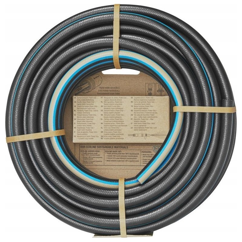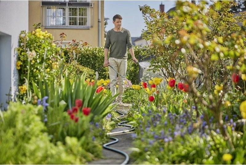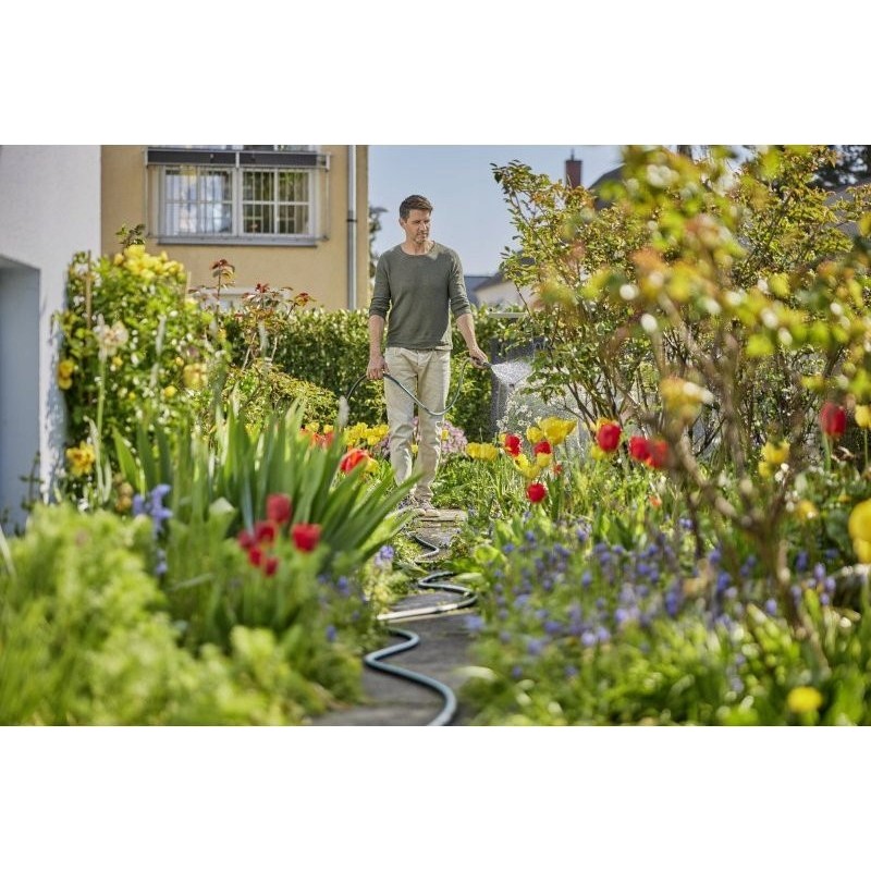 Der Schlauch besteht aus TPE, und die verwendeten Kunststoffteile bestehen zu über 65 % aus recycelten Kunststoffen, hauptsächlich aus Haushaltsabfällen wie Verpackungen. Der für die Herstellung des Basissets verwendete Kunststoff enthält über 90 % recycelten Kunststoff, der ebenfalls hauptsächlich aus Haushaltsabfällen stammt. Neben dem recycelten Kunststoff enthält das korrosionsbeständige Metall mehr als 35 % recyceltes Metall. Das Set sieht nicht nur hervorragend aus, sondern gewährleistet dank seiner hochwertigen Verarbeitung auch eine lange Lebensdauer. Es ist daher die ideale Wahl für alle, die sich aktiv für den Umweltschutz einsetzen möchten. Der EcoLine-Gartenschlauch ist frei von Phthalaten und anderen Schadstoffen (<0,1 %). Das Power-Grip-Profil sorgt für eine stabile Verbindung und optimalen Halt zwischen Schlauch und Schnellkupplung oder Schnellkupplung aus Metalllegierung. Der Schlauch ist leicht und handlich in der Anwendung. Das Set ist UV- und frostbeständig und kann daher das ganze Jahr über im Freien verbleiben. Der Berstdruck des Schlauchs beträgt 20 bar. Die Zweifunktions-Sprühdüse sorgt für einen optimalen Wasserstrahl, der sich der jeweiligen Situation anpasst. Sie ermöglicht eine stufenlose Regulierung vom Punktstrahl für Reinigungsarbeiten bis zum Sprühstrahl für die Bewässerung. Die im Set enthaltene Schnellkupplung aus Metall ermöglicht den Wechsel der Aufsätze, ohne den Wasserhahn zudrehen zu müssen: Der Wasserfluss wird automatisch unterbrochen, sobald der Aufsatz abgenommen wird, und erst wiederhergestellt, wenn ein neuer aufgesetzt wird. Die natürliche Wahl für Gartenliebhaber. Die neue EcoLine-Serie. Ökologisch hergestellt. Ästhetisch gestaltet. Langlebig.