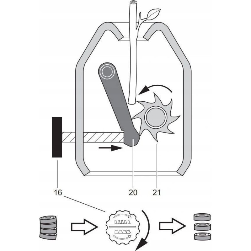 Dieser Häcksler bewältigt Äste mit einem Durchmesser von bis zu 44 mm. Er arbeitet mit einer Spannung von 230 V und einer Frequenz von 50 Hz.