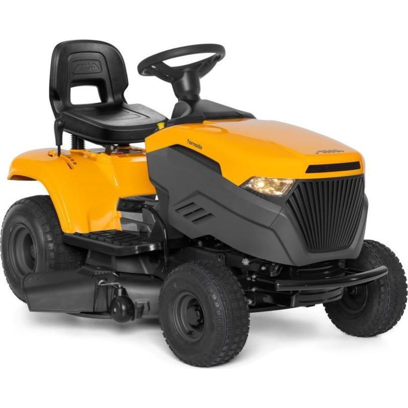 Der STIGA Tornado 398 M ist für alle gedacht, die im Seitenauswurf- oder Mulchmodus mähen möchten. Dieser Gartentraktor zeichnet sich durch ein attraktives, modernes Design aus. Er ist mit einem STIGA-Motor mit einer Nennleistung von 6,5 kW bei 2800 U/min ausgestattet. Der Tornado 398 M ist mit einem Schaltgetriebe, einem 98 cm breiten Mähwerk, 2 Messern und 2 Rädern ausgestattet, die ein Abtragen des Rasens verhindern. Die Schnitthöhe lässt sich über einen Hebel neben dem Sitz in 1 von 7 Stufen (im Bereich von 25 bis 80 mm) einstellen.