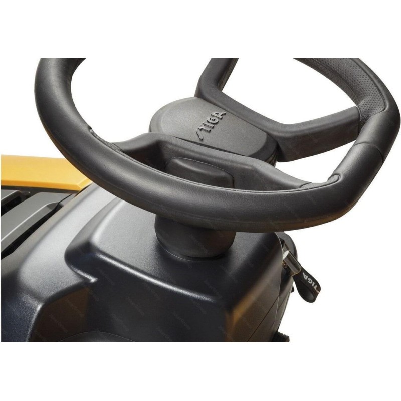 Die Messer werden per Knopfdruck über eine elektromagnetische Kupplung aktiviert. Das Ladegerät und der STIGA-Mulcheinsatz sind separat erhältlich. Das ergonomische STIGA-Lenkrad sorgt in Kombination mit dem verstellbaren STIGA Classic-Sitz mit hoher Rückenlehne für Fahrkomfort. Der Traktor wird Ihnen von einem qualifizierten STIGA-Händler geliefert, der das Gerät vollständig für den Einsatz vorbereitet und Sie ohne zusätzliche Kosten in die Bedienung einweist!