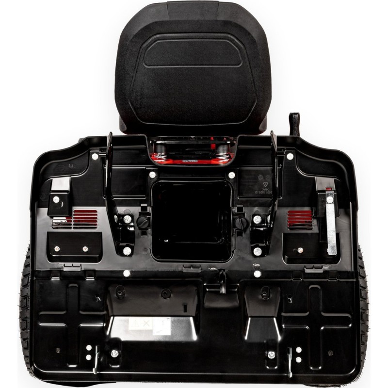 - Das Mähwerk ist mit einem Antivibrationssystem und zwei Stützrädern ausgestattet, die den Rasen vor Beschädigungen schützen.