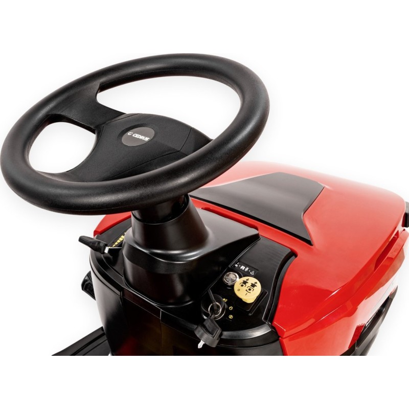 - Das ergonomische Design erleichtert dem Bediener die Arbeit dank eines breiten Einstiegs, eines hoch angeordneten Lenkrads und eines verstellbaren Sitzes.