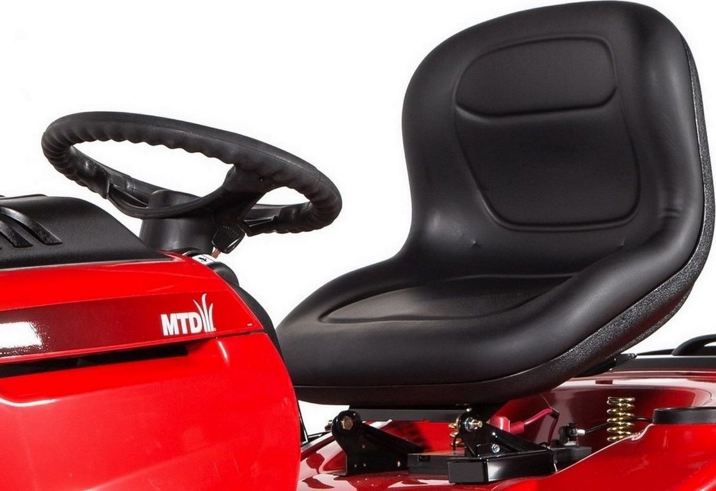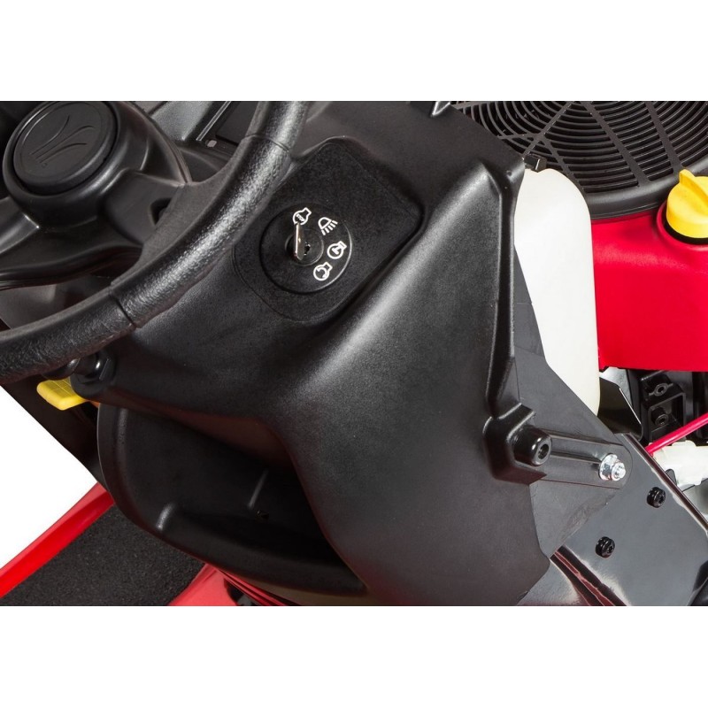 Der Traktor verfügt über einen bequemen Sitz sowie einen Sicherheitsschalter, der den Motor und das Schneidwerk automatisch abschaltet, wenn der Benutzer den Sitz verlässt. Das angenehm weiche Lenkrad sorgt für Komfort beim Manövrieren des Geräts. Die Frontscheinwerfer ermöglichen präzises Arbeiten auch nach Einbruch der Dunkelheit – effizientes Mähen ohne Einschränkungen. Immer!