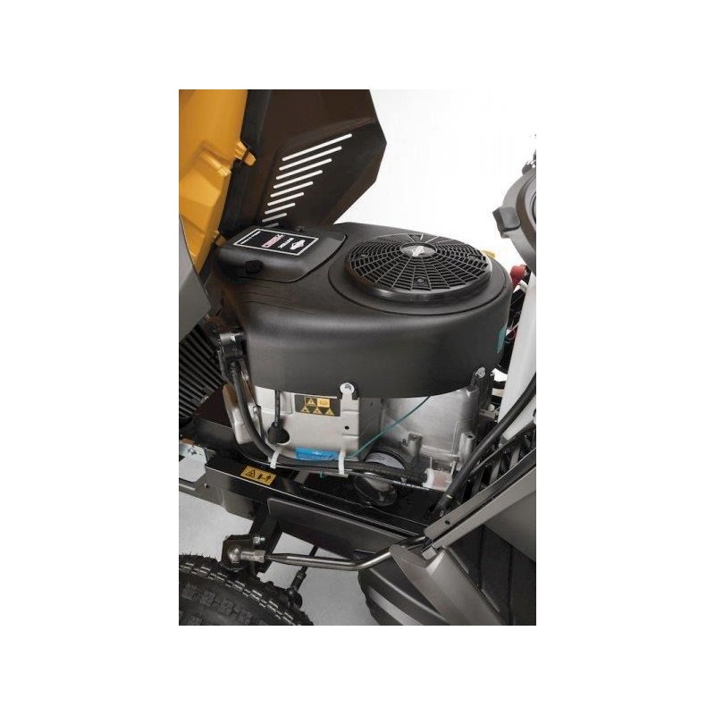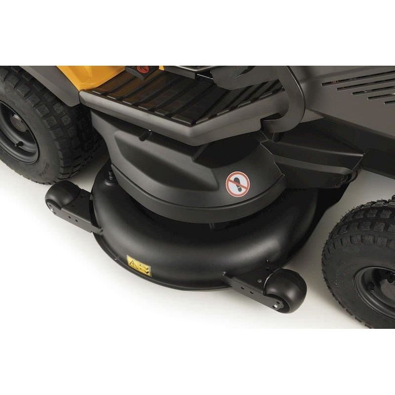 Das 122 cm breite Mähaggregat ist mit zwei synchronisierten Messern ausgestattet, die die Grasaufnahmekapazität optimieren. Die Messer werden elektromagnetisch geschaltet. Die Schnitthöhe kann aus sieben verschiedenen Positionen gewählt werden.