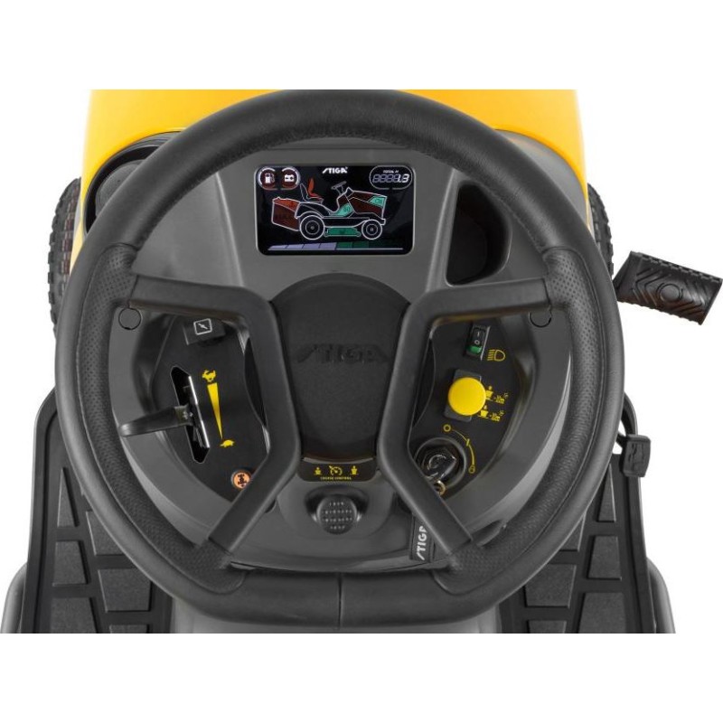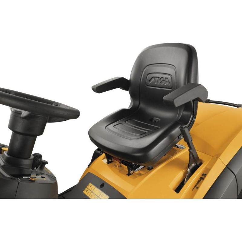 Dank der weichen Oberfläche des Stiga Premium-Lenkrads, des ergonomischen Comfort Plus-Sitzes mit Armlehnen und der Tempomat-Funktion genießen Sie als Fahrer höchsten Komfort. Fahrkomfort ist unverzichtbar für alle, die regelmäßig zeitaufwändige Mäharbeiten verrichten.