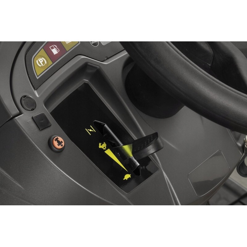 Das stufenlos regelbare, pedalgesteuerte hydrostatische Getriebe sorgt für hervorragende Manövrierfähigkeit. Dadurch kann sich der Benutzer frei zwischen Hindernissen bewegen, was die Arbeit unter schwierigen Geländebedingungen erheblich erleichtert.