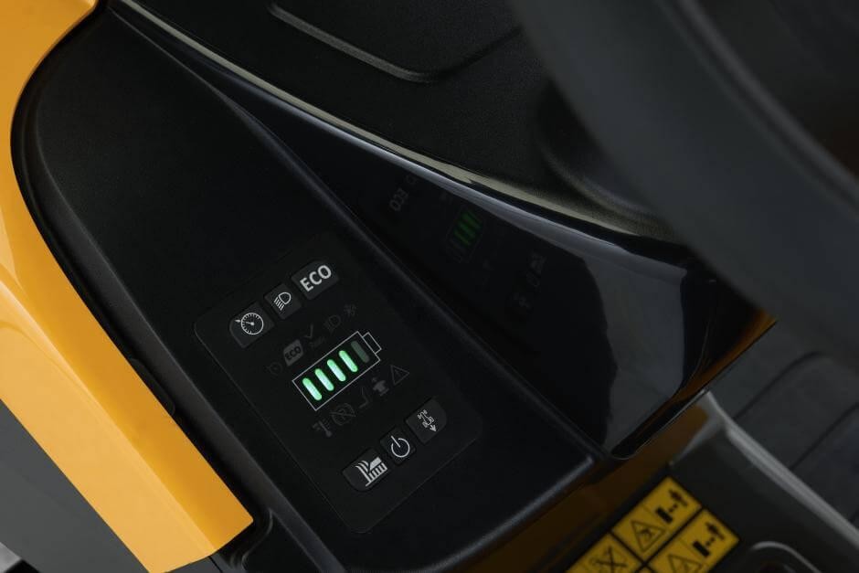 Der beeindruckende 48-V-Akku mit 40 Ah im Estate 584e liefert ausreichend Leistung für eine Betriebsdauer von ca. 60 Minuten mit einer einzigen Ladung. Dank des Akkubetriebs profitieren Sie von weniger Lärm, weniger Vibrationen und null Emissionen. Der leistungsstarke Motor ermöglicht eine Geschwindigkeit von bis zu 9 km/h, und die beiden Schneidmesser-Motoren mit einer Gesamtleistung von 3 kW kommen ohne Riemen, Riemenscheiben und kostspielige Wartung aus. Einfach aufsetzen, einschalten und loslegen. Der Eco-Modus spart Energie, indem er die Drehzahl der Messer bei leichtem Schnitt reduziert, und die LED-Scheinwerfer sorgen für sicheres Mähen auch bei schlechten Lichtverhältnissen. Der große Grasfangkorb mit 240 Litern Fassungsvermögen sorgt zudem für weniger Zeit beim Entleeren. Dank der großen Schnittbreite von 84 cm, die in 7 Stufen von 25 bis 80 mm einstellbar ist, erledigen Sie jede Arbeit schnell.