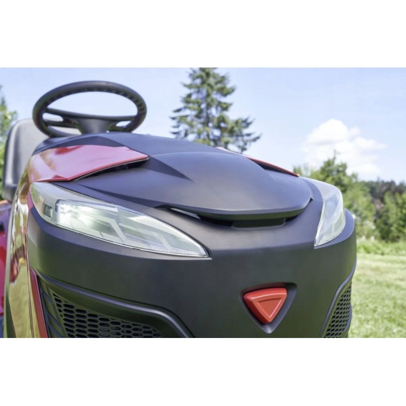 Ein Blick auf den AL-KO Gartentraktor T 18-111.4 HDS-A V2 zeigt, dass es sich um eine professionelle Gartenmaschine handelt. Besonders die LED-Beleuchtung macht einen beeindruckenden Eindruck. Das moderne Design fügt sich in die neue AL-KO-Stylistik ein und verleiht den Traktoren der Serien COMFORT und PREMIUM ein einheitliches Erscheinungsbild. Es ist kaum zu übersehen, dass sich der T 18-111.4 HDS-A V2 COMFORT dank seiner neuen Form unter anderen Traktoren besonders gut präsentiert. Darüber hinaus kann der Traktor mit einer innovativen Stoßstange nachgerüstet werden, die den individuellen Stil der Maschine unterstreicht.