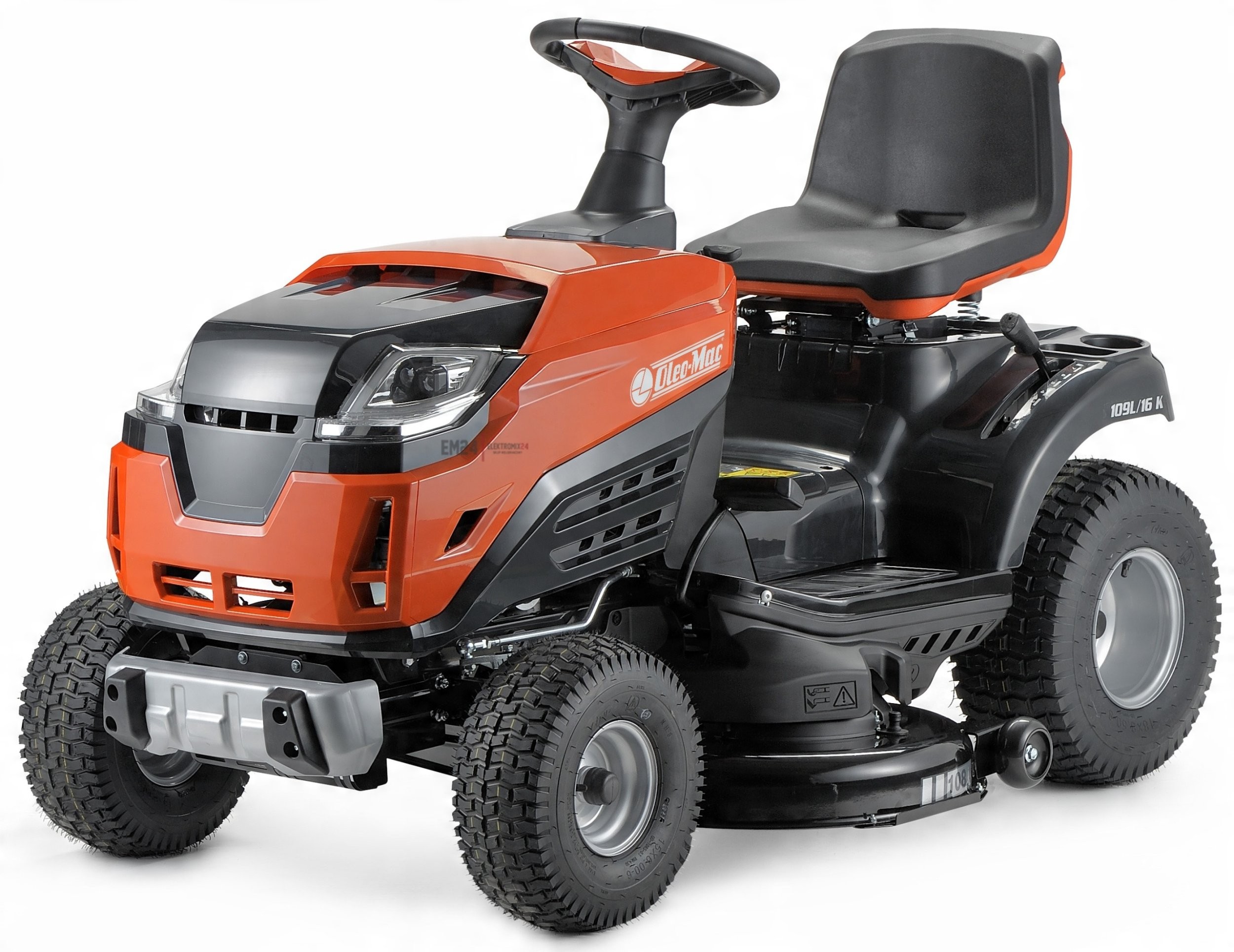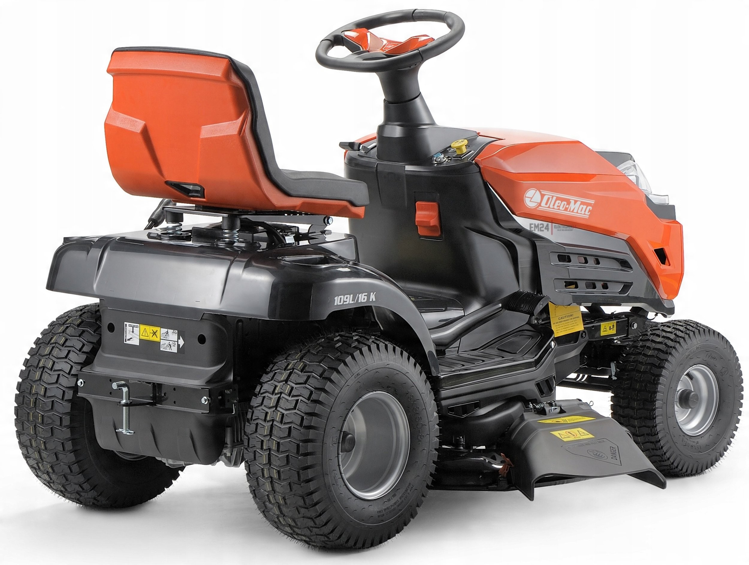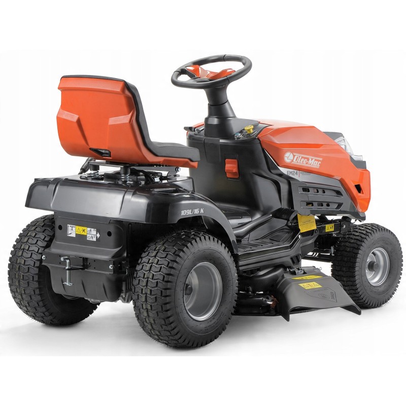 Der Traktor OLEO-MAC OM 109L/19 KV wurde mit Blick auf den Komfort des Benutzers entwickelt. Der ergonomische Sitz, das hoch angeordnete Lenkrad und der breite Einstieg sorgen dafür, dass die Bedienung des Geräts bequem und intuitiv ist. Breite Räder mit geeignetem Profil beschädigen das Gras nicht, was den Arbeitskomfort zusätzlich erhöht.